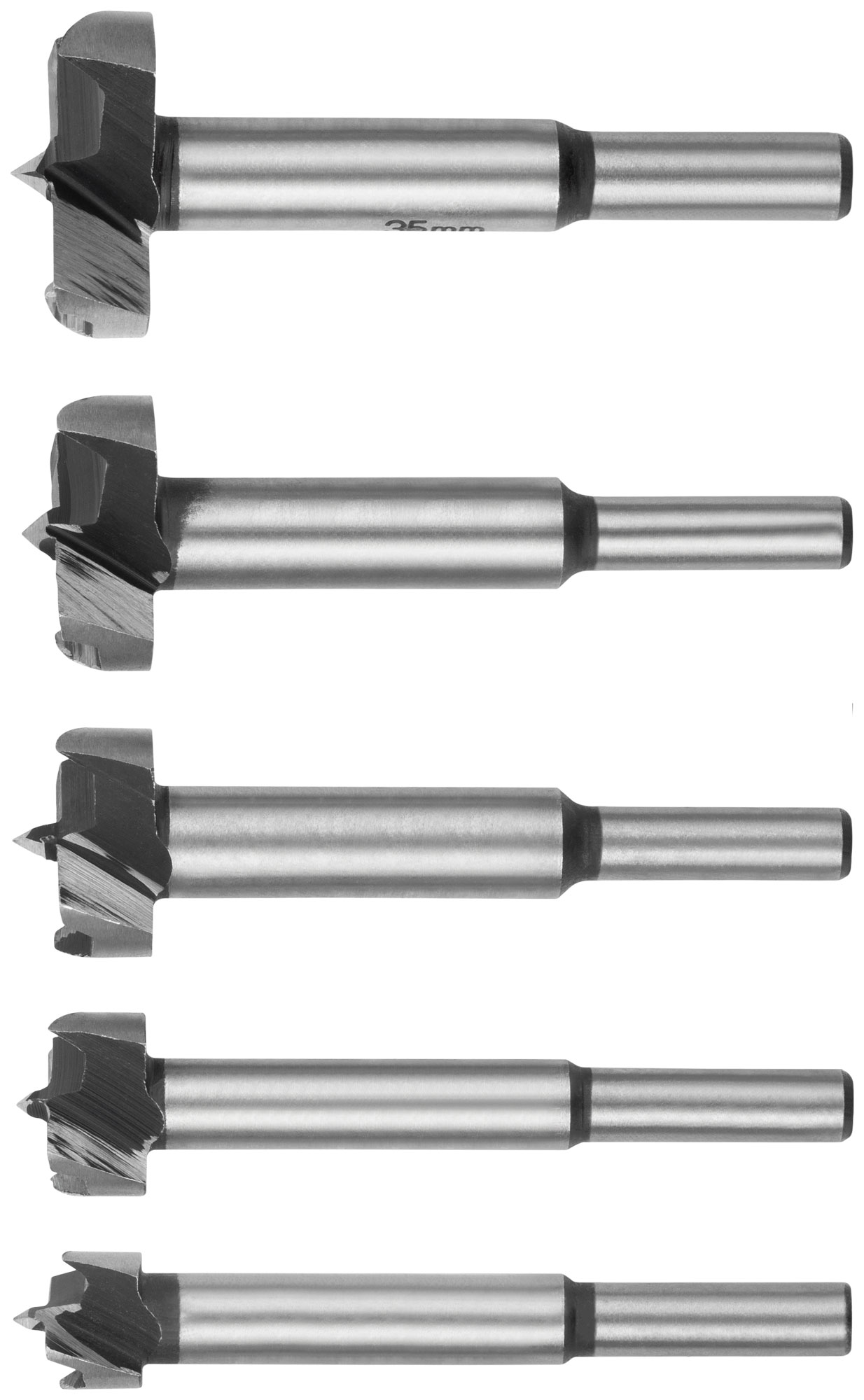 Набор включает пять сверл диаметром 15, 20, 25, 30 и 35 мм, что позволяет выбрать оптимальный размер для каждой задачи. Изготовлены из легированной стали 40Cr, они обеспечивают долговечность и стойкость к износу.