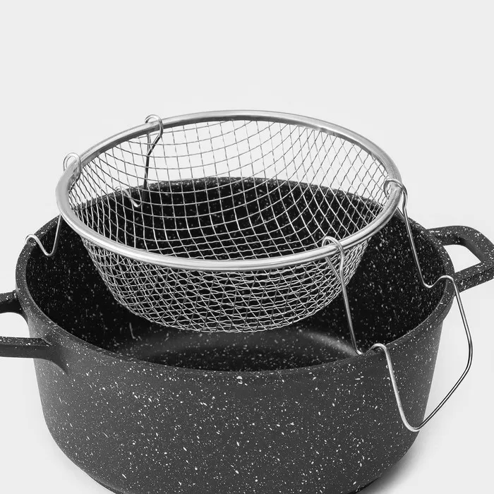Компактная и удобная съёмная фритюрница облегчает приготовление картофеля фри, рыбы или овощей в кляре, а также макарон, яиц и пельменей. Надо просто опустить корзину в кипящую воду или масло, а после готовности вытащить и переложить еду в тарелку — больше нет необходимости обжигать руки, придерживая горячую крышку в процессе сливания. Съёмная фритюрница легко заменит на кухне профессиональную фритюрницу.