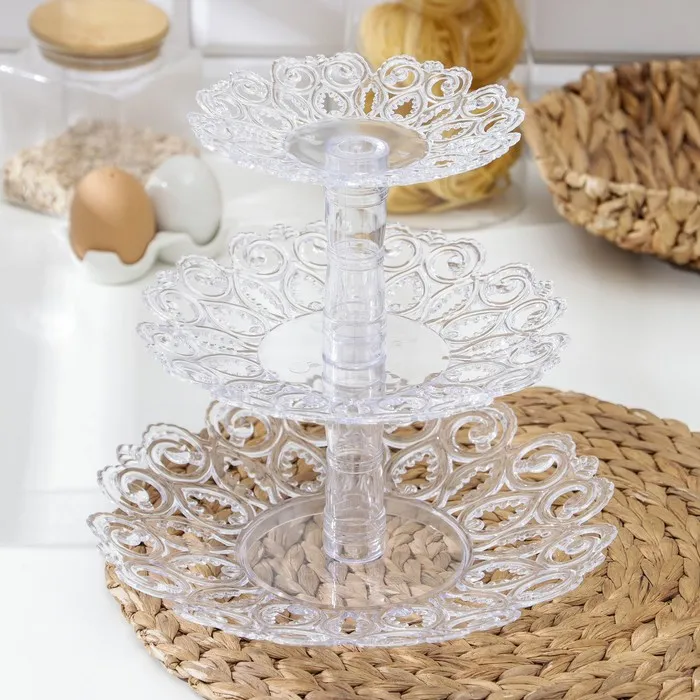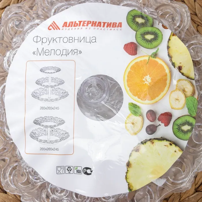 Фруктовница Альтернатива «Мелодия», 3-х ярусная 16 см, 21 см, 27 см, пластик, прозрачная — Характеристики