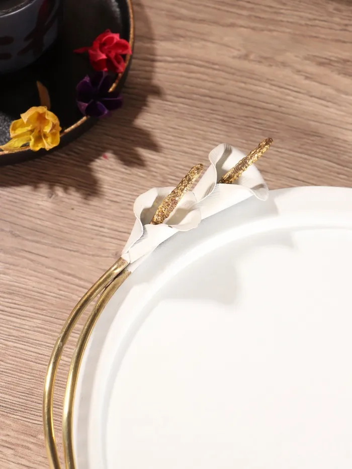 Фруктовница "Белые цветы каллы" белая с золотом нержавеющая сталь 25х26х7,5 см — Характеристики