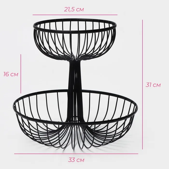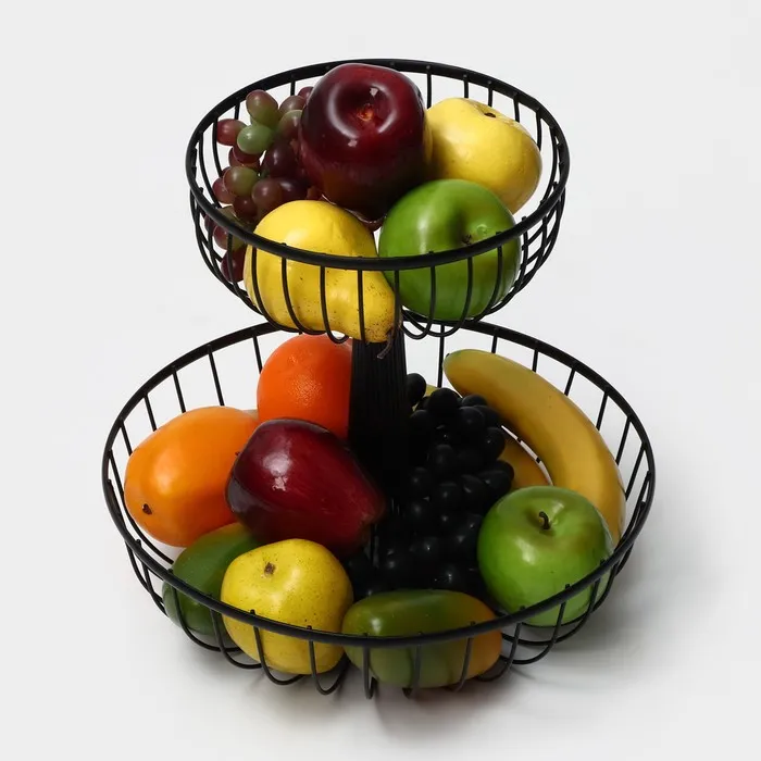 - Два уровня хранения: благодаря двум ярусам, вы сможете разместить больше фруктов и угощений, делая сервировку стола более эффектной и оригинальной.