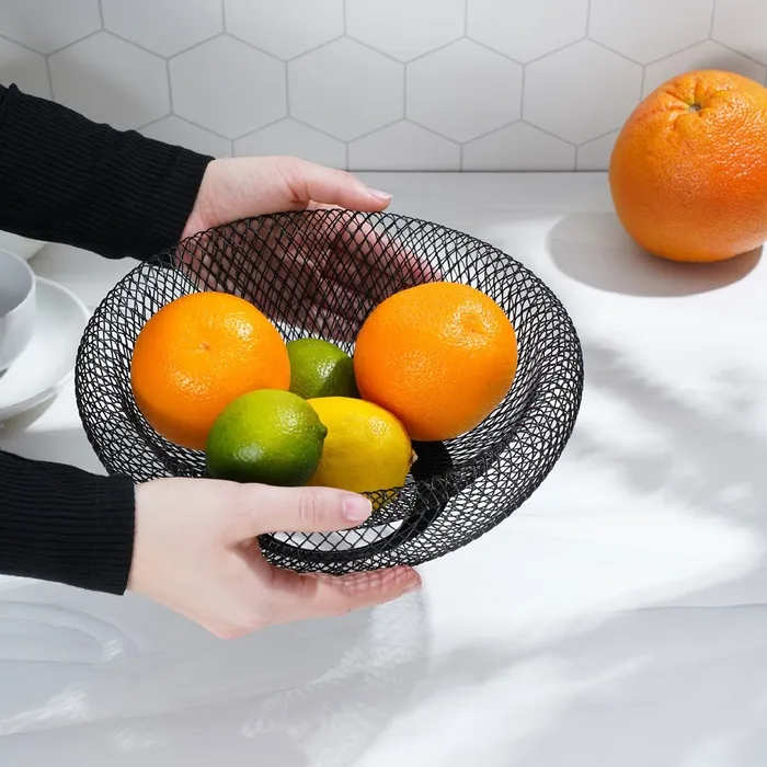 Представляем вашему вниманию настоящую находку для любителей стиля и функциональности — круглую фруктовницу в минималистском дизайне. Сочетая в себе геометрические линии и элегантный чёрный цвет, она станет не только удобной посудой для сервировки ваших любимых фруктов, но и ярким акцентом в любом интерьере.