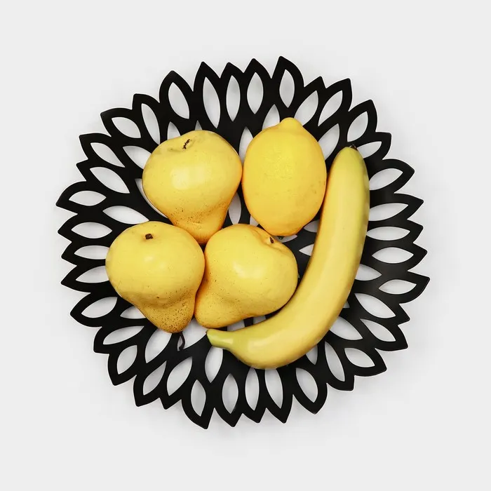Фруктовница Доляна «Пион», 28.5×28.5×4.5 см, чёрная — Характеристики