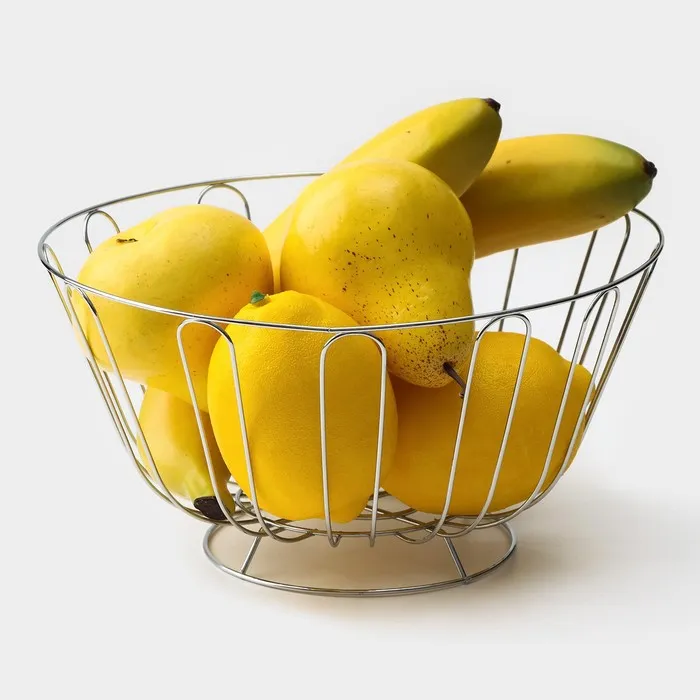Стильная ваза для фруктов станет идеальным дополнением любого интерьера. Корзинка выполнена из окрашенного металла, что защищает её от коррозии. Благодаря оригинальному дизайну, фруктовница станет украшением вашей кухни или праздничного стола. Удобная конструкция позволит дольше сохранить фрукты свежими.
