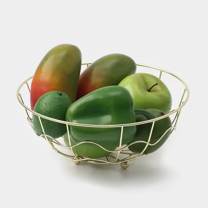 Стильная ваза для фруктов станет идеальным дополнением любого интерьера. Корзинка выполнена из окрашенного металла, что защищает её от коррозии. Благодаря оригинальному дизайну, фруктовница станет украшением вашей кухни или праздничного стола. Удобная конструкция позволит дольше сохранить фрукты свежими.
