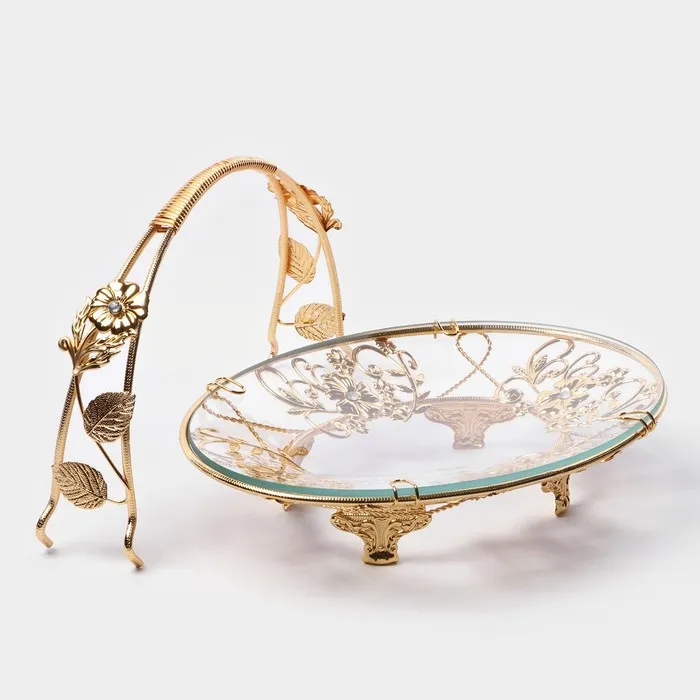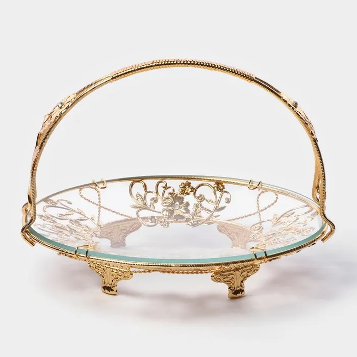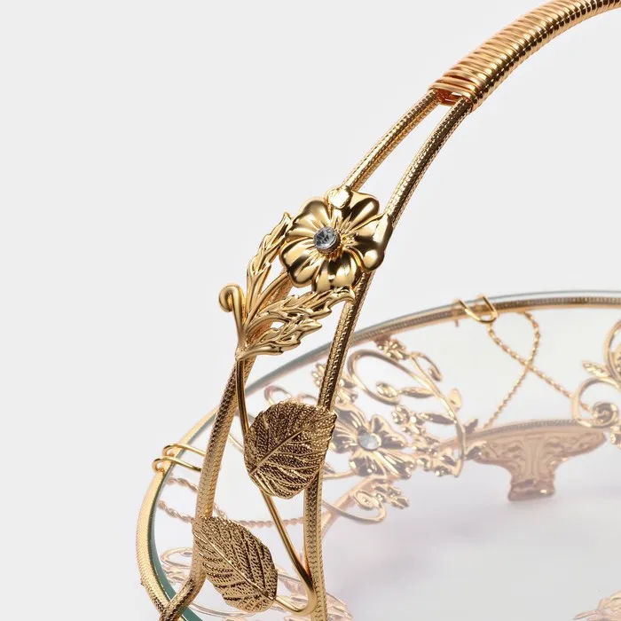 Фруктовница металлическая «Хайгарден», 26×18×19 см, съёмная ручка, металла золотистая — Характеристики