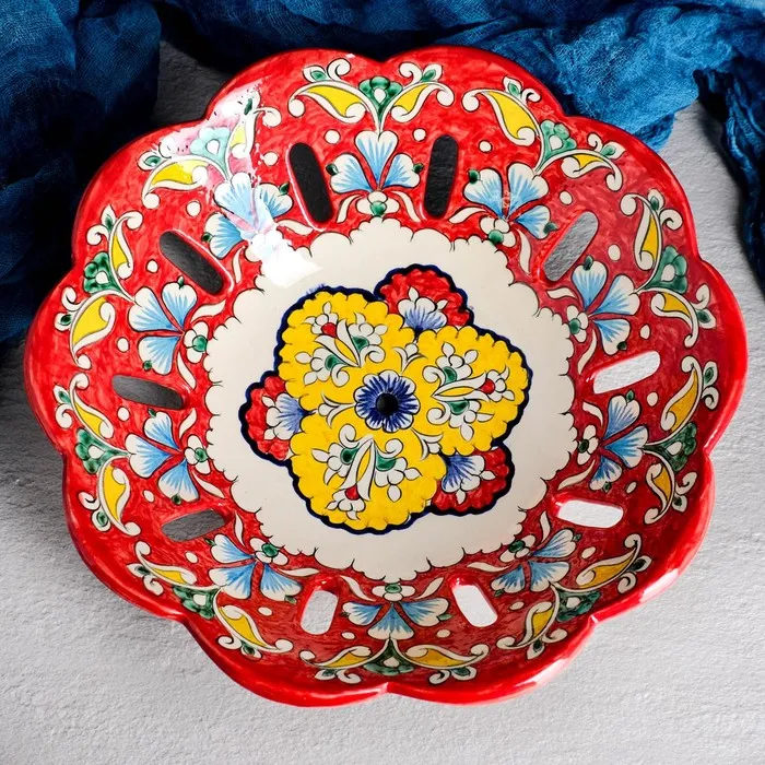 Фруктовница Риштанская Керамика «Цветы», 28×6 см, красная — Характеристики