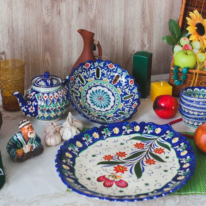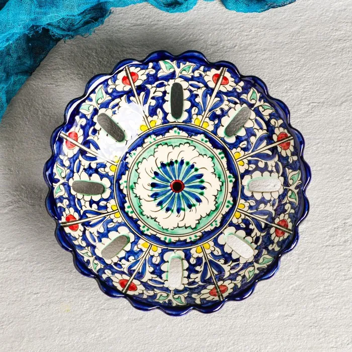 Фруктовница Риштанская Керамика "Узоры", 23 см, синяя — Характеристики