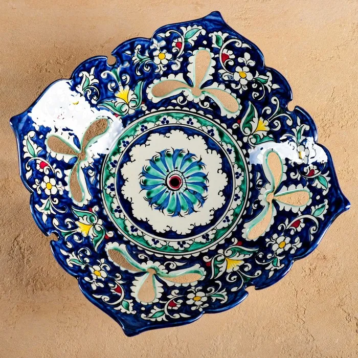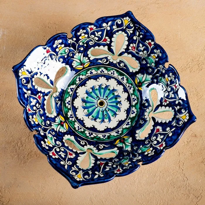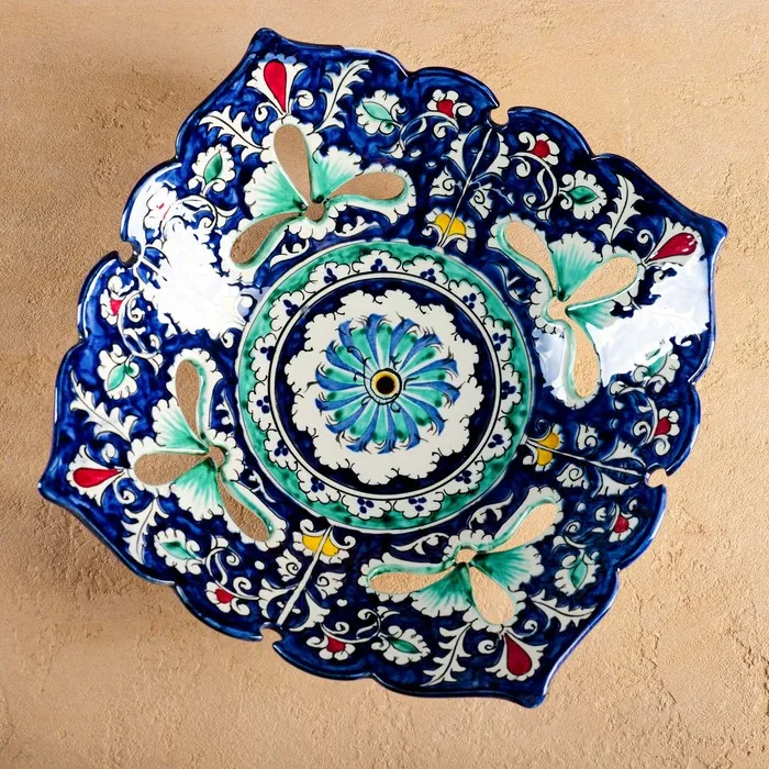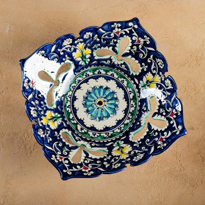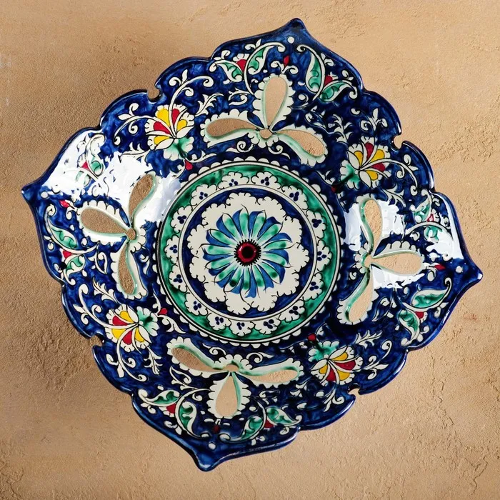 Фруктовница Риштанская Керамика «Узоры», 24.5×24.5×7 см, синяя — Характеристики