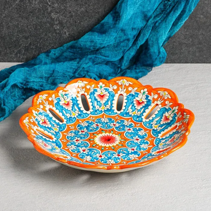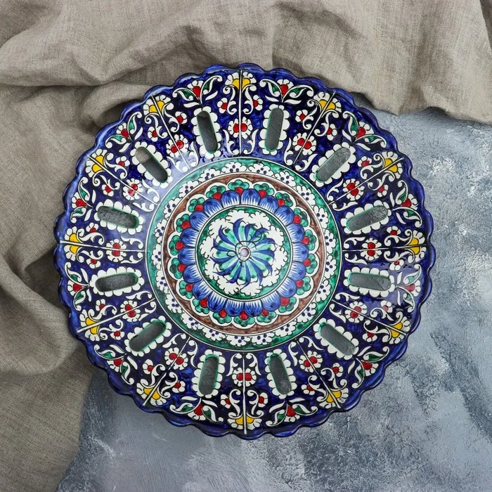 Фруктовница Риштанская Керамика "Узоры", 33 см, синяя — Характеристики