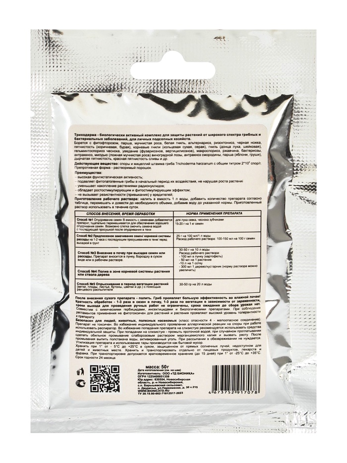 Фунгицид «Триходерма», для защиты растений, 50 г — Характеристики
