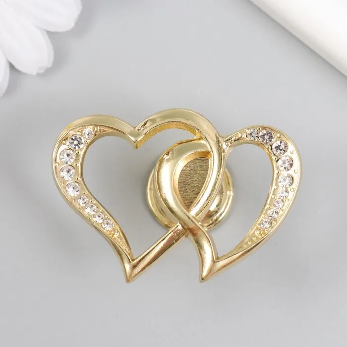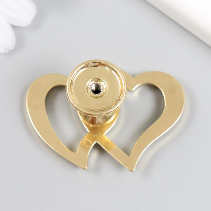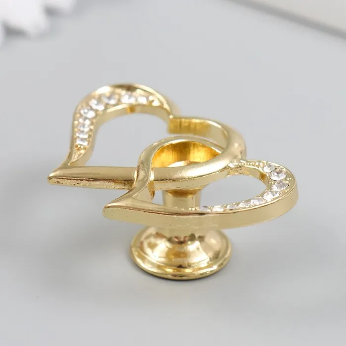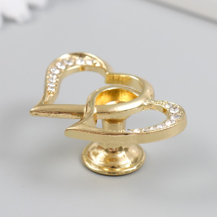 Фурнитура для шкатулки, ручка «Два сердца», металл, стразы, золото 3.8×5.4×2.4 см