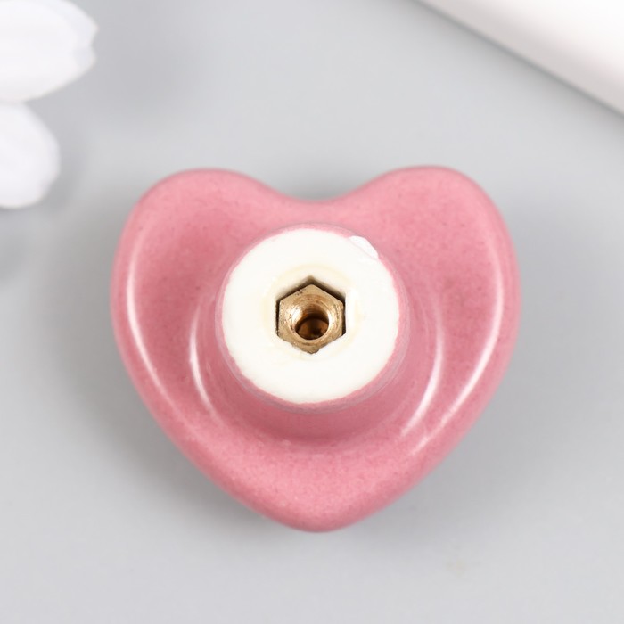 Фурнитура для шкатулки, ручка «Сердечко», керамика, металл, розовая 3.8×3.8×3 см
