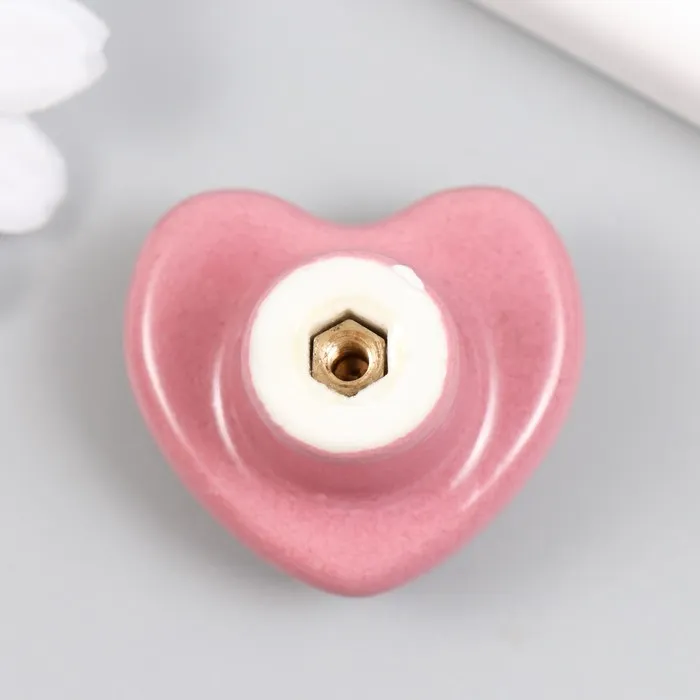 Фурнитура для шкатулки, ручка «Сердечко», керамика, металл, розовая 3.8×3.8×3 см — Характеристики