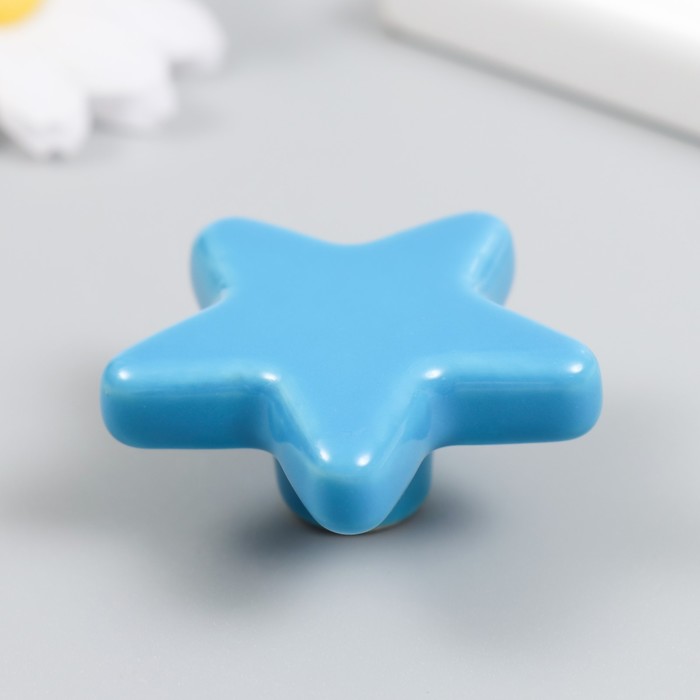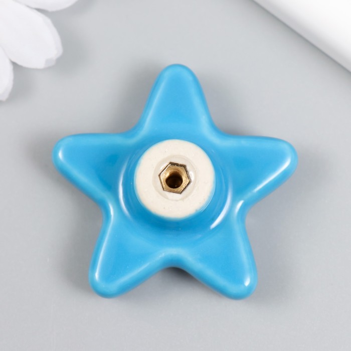 Фурнитура для шкатулки, ручка «Звёздочка», керамика, металл, голубой, 4.9×4.9×2.2 см