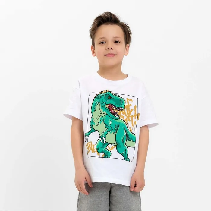 Футболка детская KAFTAN "Динозавр", р. 34 (122-128 см), белый — Характеристики