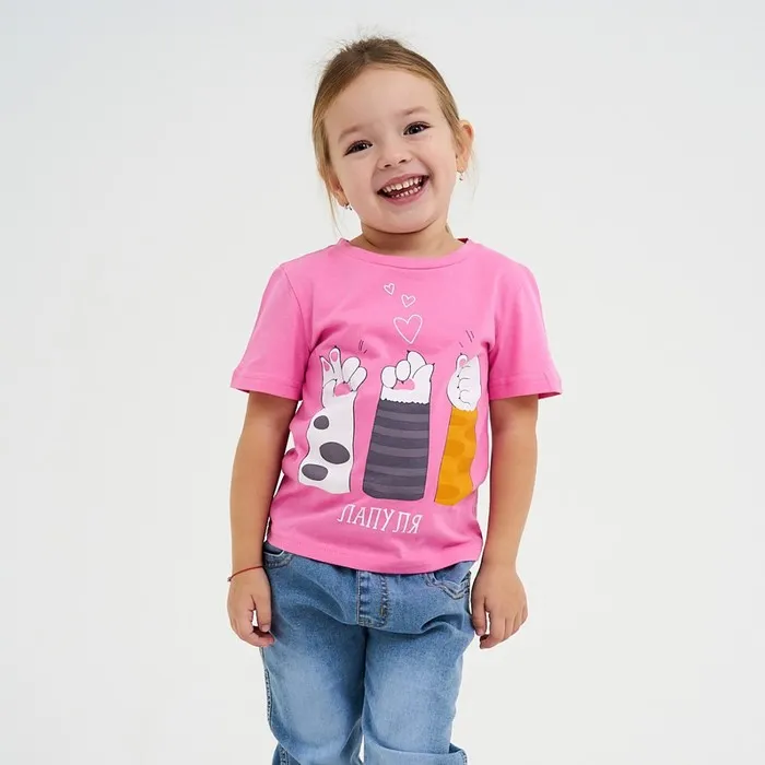 Футболка детская KAFTAN "Лапуля" р.34 (122-128), розовый — Характеристики