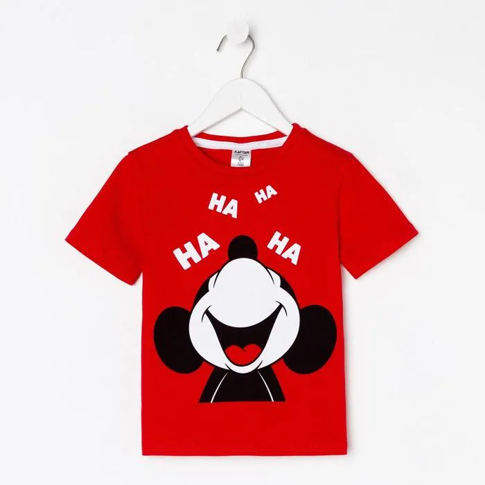 Футболка детская «Хаха» Микки Маус, рост 134-140 см, красная — Характеристики