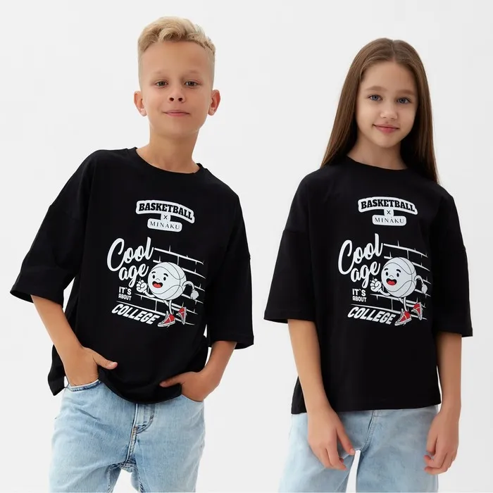 Футболка детская MINAKU: bascetball kids, цвет чёрный, рост 122 см — Характеристики