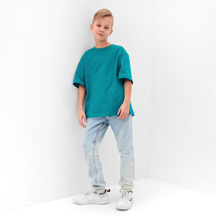 Футболка детская MINAKU, бирюзовая, рост 128 см — Характеристики