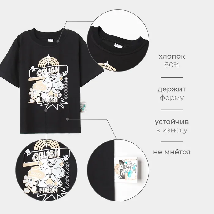 Футболка детская MINAKU, чёрная, рост 110 см — Характеристики