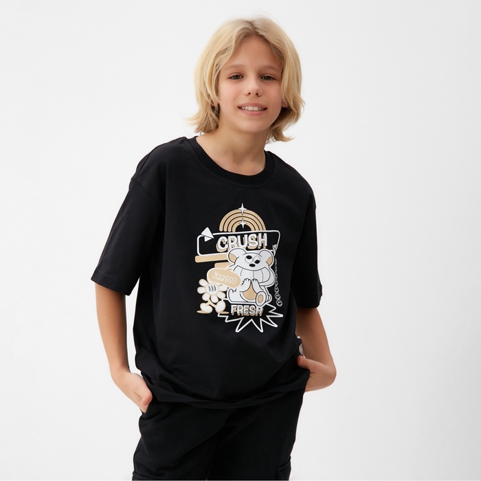 Футболка детская MINAKU, чёрная, рост 116 см — Характеристики