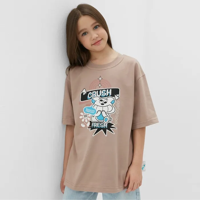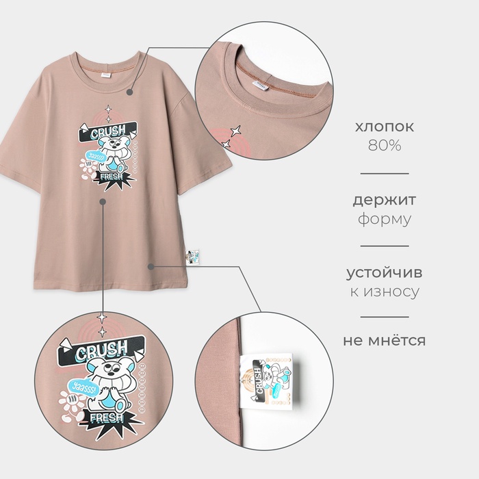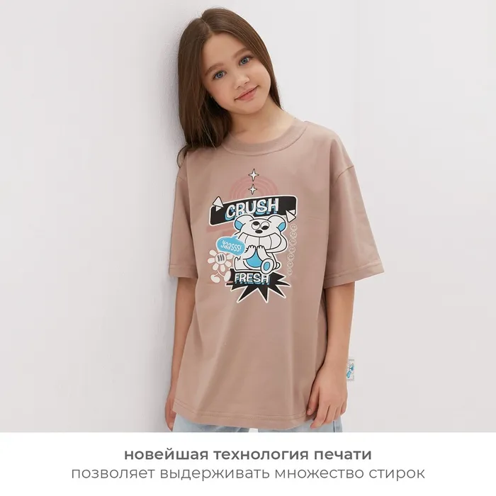 Футболка детская MINAKU: CRUSH, бежевая, рост 140 см — Характеристики