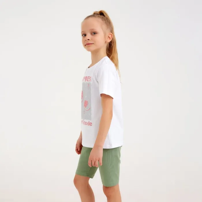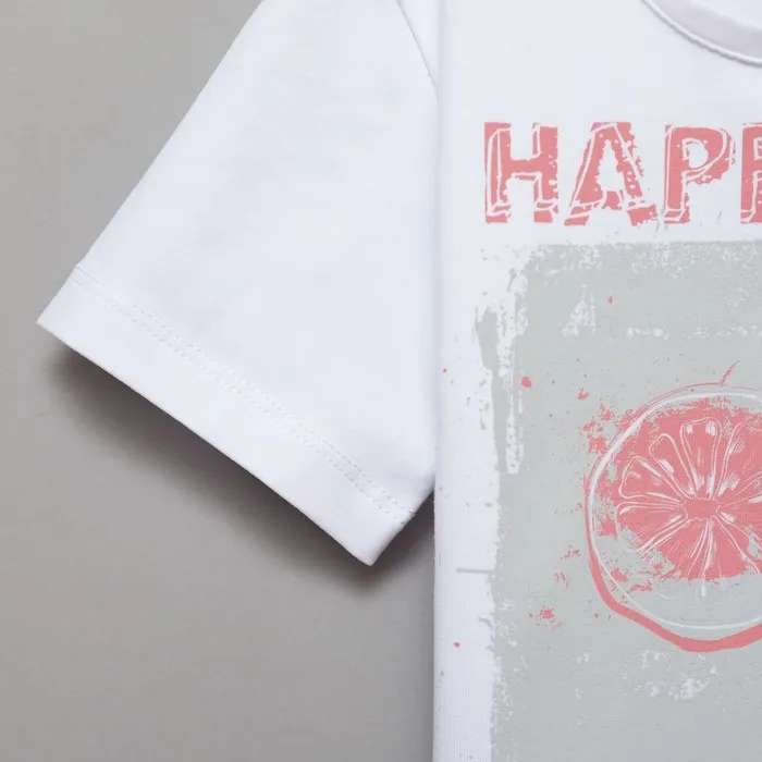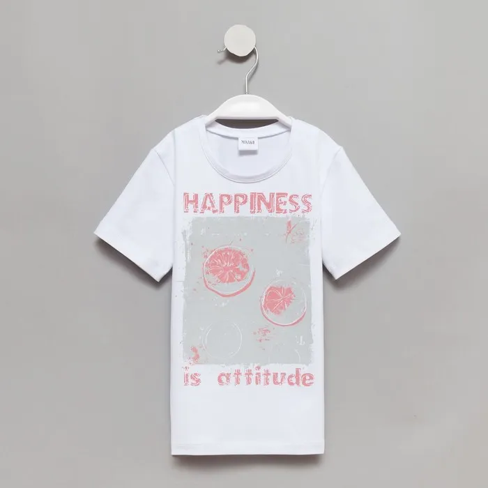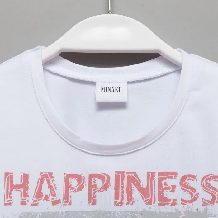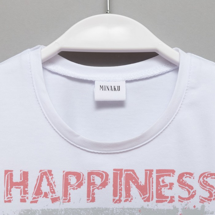 Футболка детская MINAKU Happines, белая, рост 128 см — Характеристики