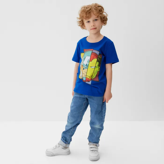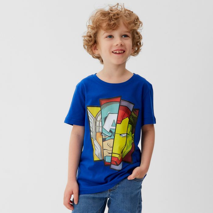 Футболка детская Мстители, рост 122-128 см, синяя — Характеристики