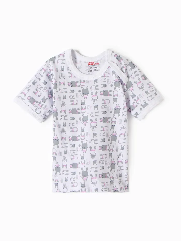 Футболка детская на кнопках "Зайки", цвет белый/розовый, рост 68 — Характеристики