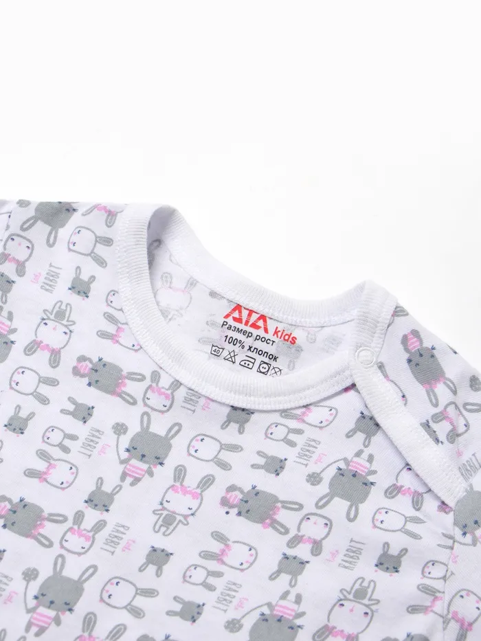Футболка детская на кнопках "Зайки", цвет белый/розовый, рост 74 — Характеристики