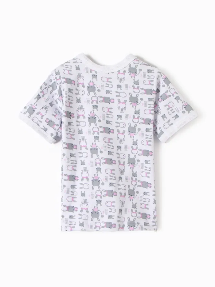 Футболка детская на кнопках "Зайки", цвет белый/розовый, рост 74
