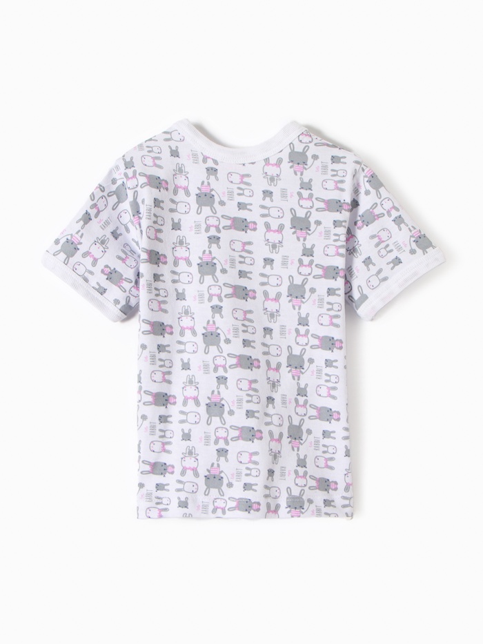 Футболка детская на кнопках "Зайки", цвет белый/розовый, рост 80 — Характеристики