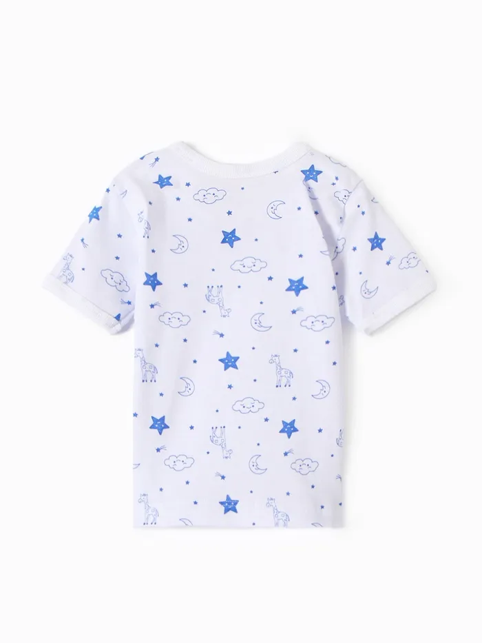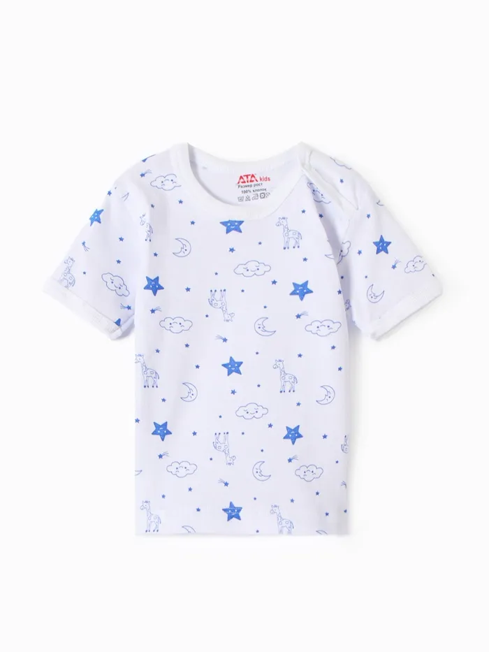 Футболка детская на кнопках "Жирафы", цвет белый/синий, рост 80 — Характеристики