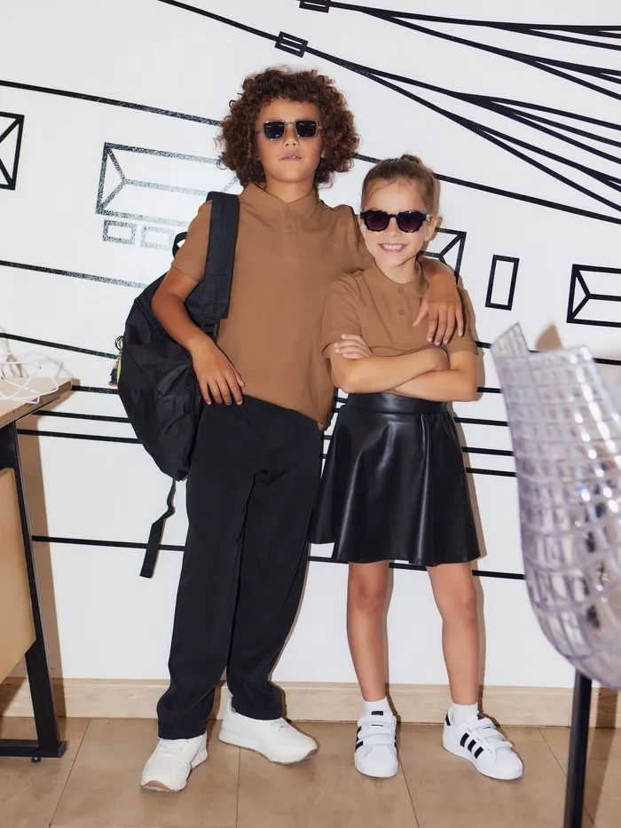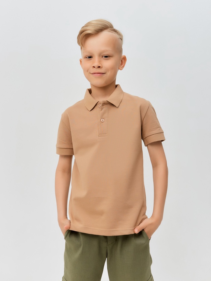 Футболка детская поло MINAKU: Basic line, бежевая, рост 104 см — Характеристики