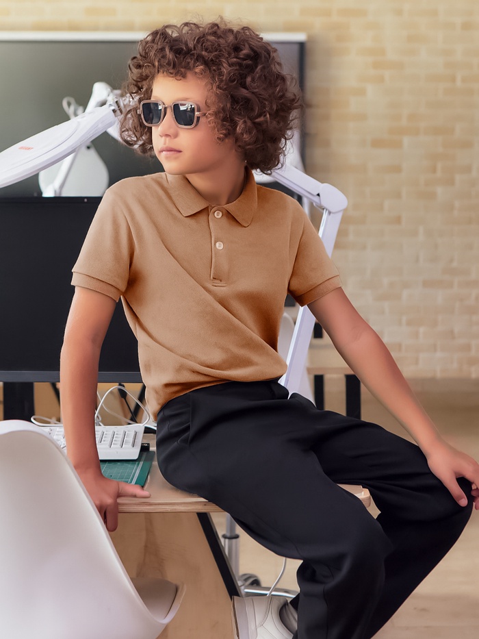 Футболка детская поло MINAKU: Basic line, бежевая, рост 110 см — Характеристики
