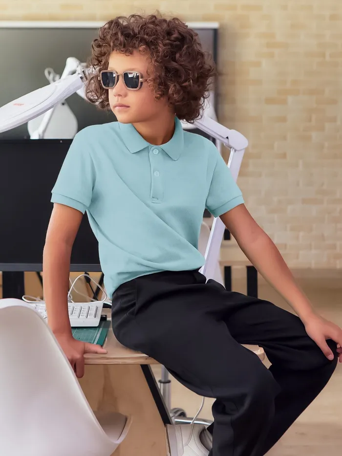 Футболка детская поло MINAKU: Basic line, голубая, рост 146 см — Характеристики