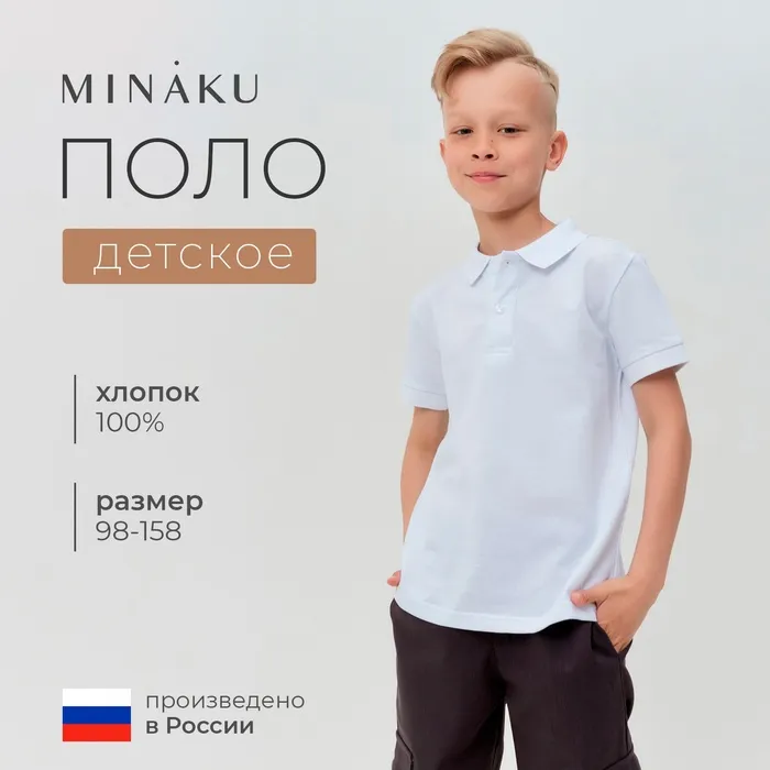 Футболка детская поло MINAKU: Basic line цвет белый, рост 134 — Характеристики