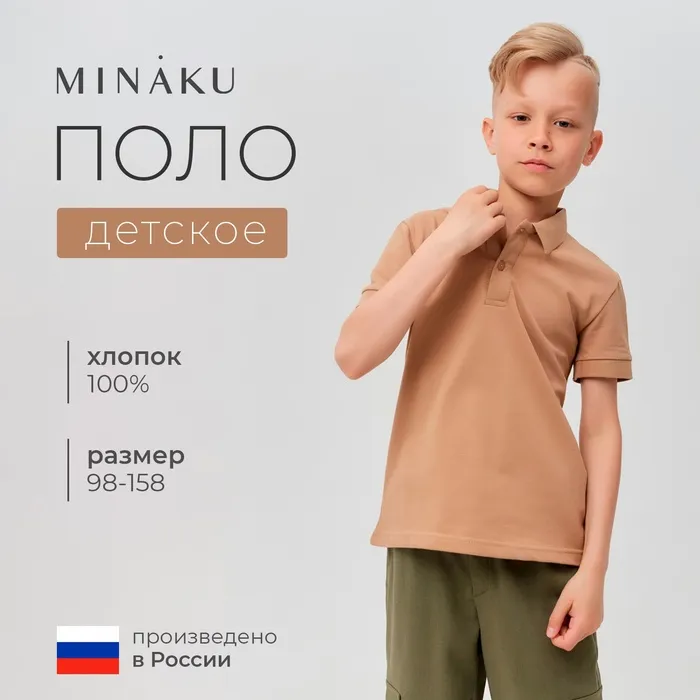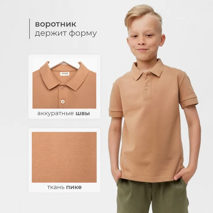 Футболка детская поло MINAKU: Basic line цвет бежевый, рост 152 — Характеристики