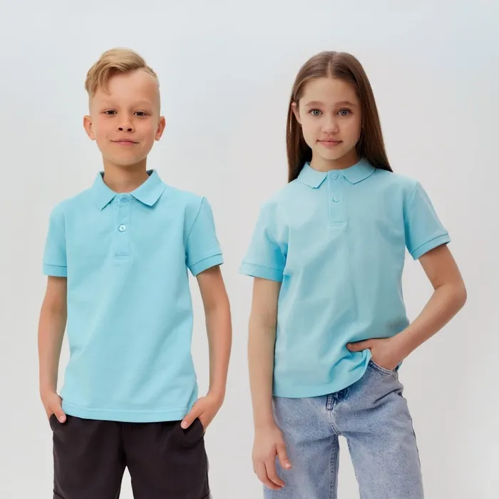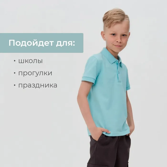 Футболка детская поло MINAKU: Basic line цвет голубой, рост 110 — Характеристики