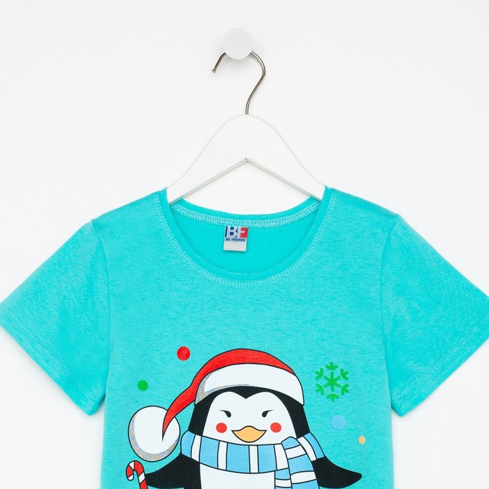 Футболка детская, цвет бирюзовый/пингвин, рост 110 см — Характеристики