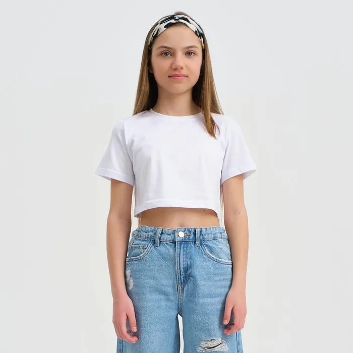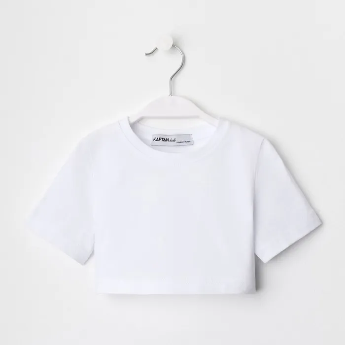 Футболка детская укороченная KAFTAN Basic line, размер 30 (98-104 см), белая — Характеристики