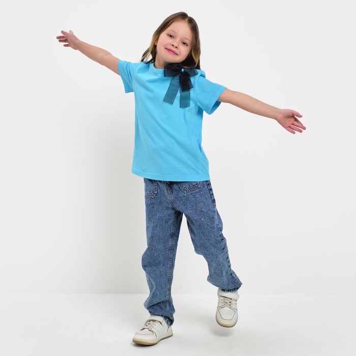 Футболка для девочки KAFTAN «Бантик», голубая, размер 32, рост 110-116 см — Характеристики