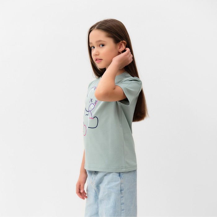 Футболка для девочки MINAKU: Gummy bear, рост (104-110 см), мятно-серый — Характеристики