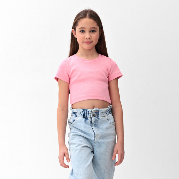 Футболка для девочки однотонная MINAKU: Basic line, розовая, рост 140 см — Характеристики