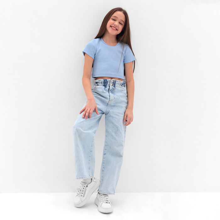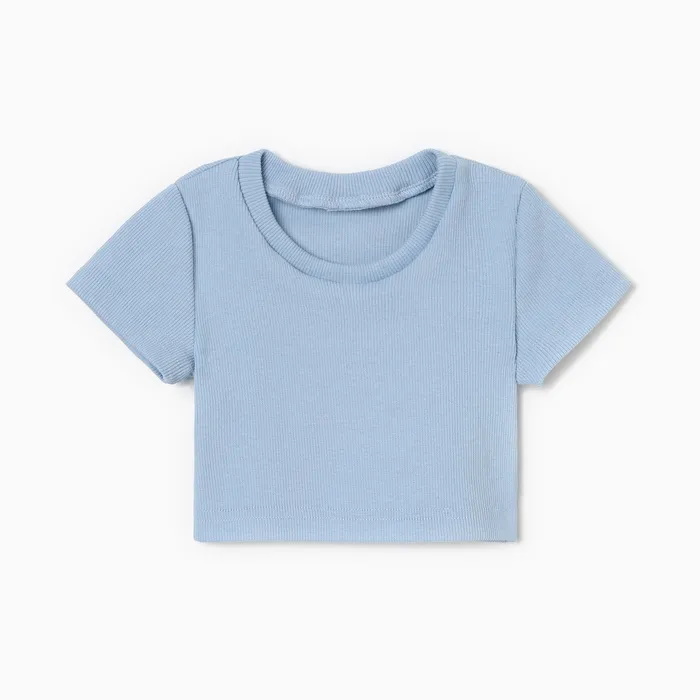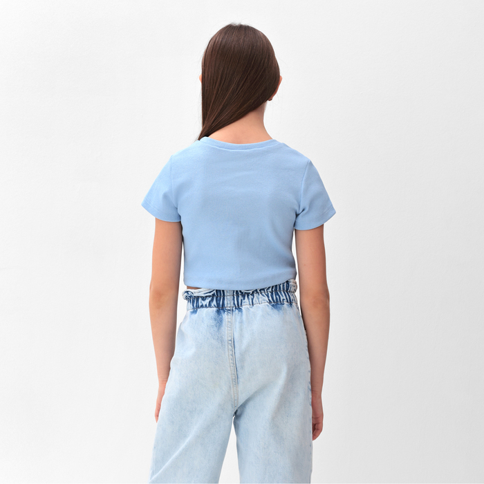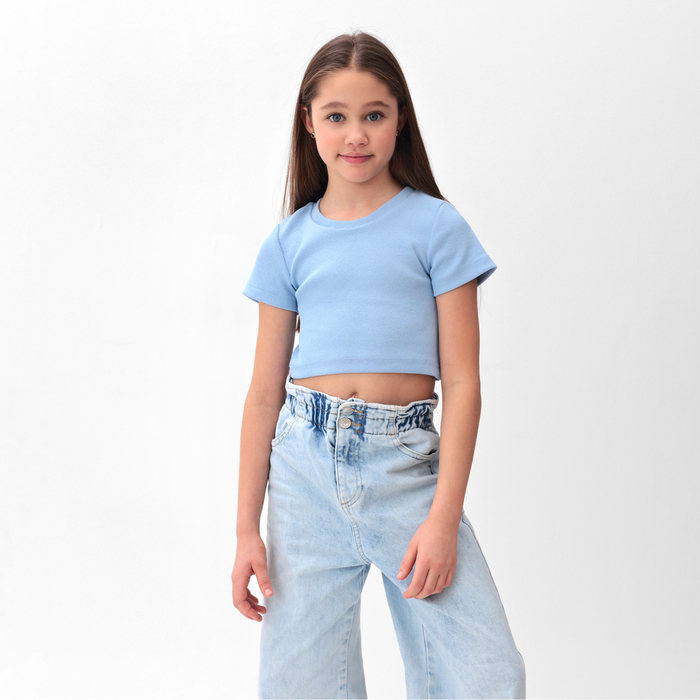 Футболка для девочки однотонная укороченная MINAKU: Basic line KIDS, голубая, рост 122 см — Характеристики