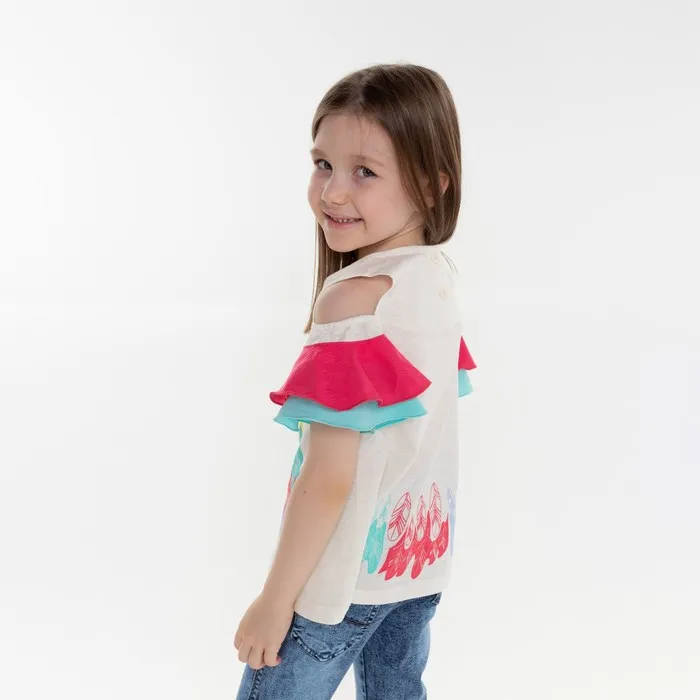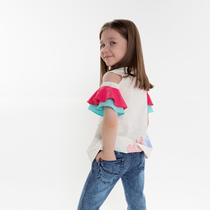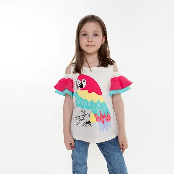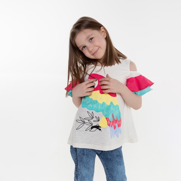 Футболка для девочки, цвет бежевый/коралловый, рост 104 см — Характеристики