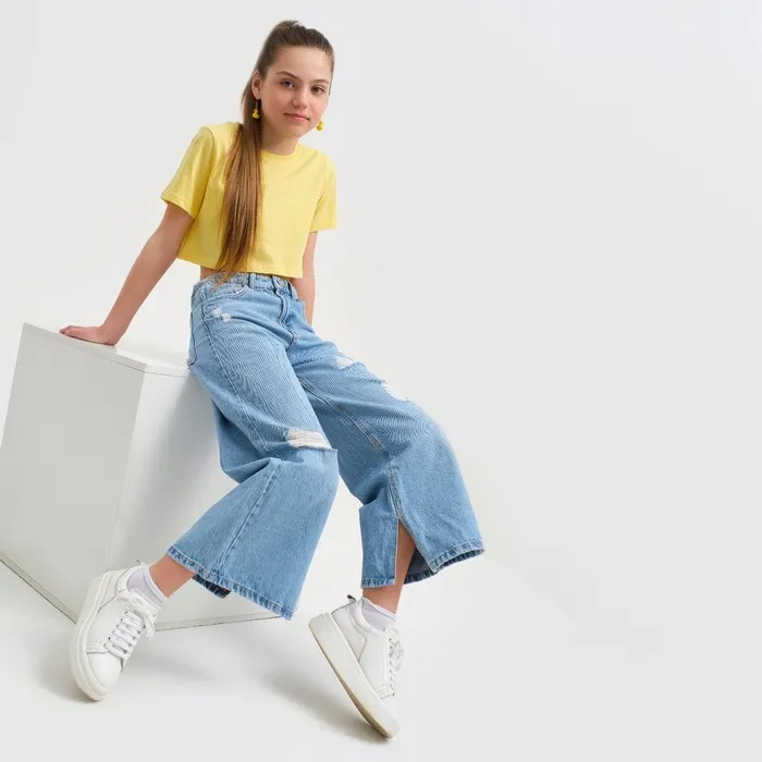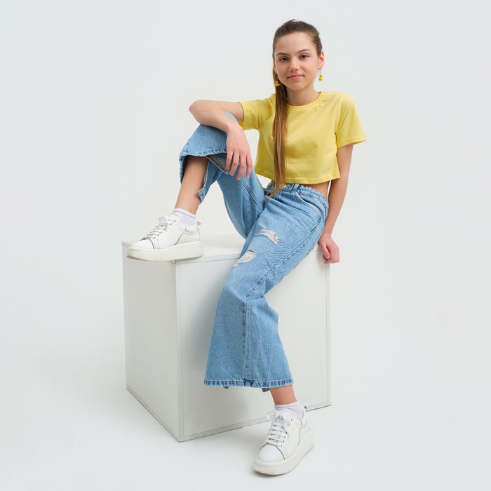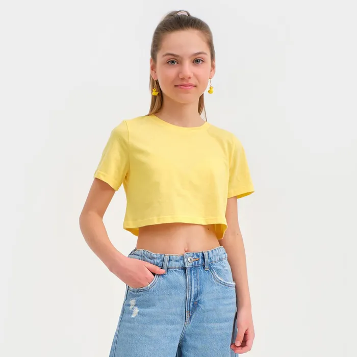 Футболка для девочки укороченная KAFTAN "Selfie", рост 134-140, цвет жёлтый — Характеристики