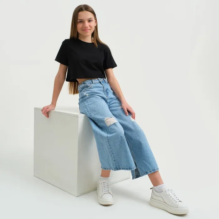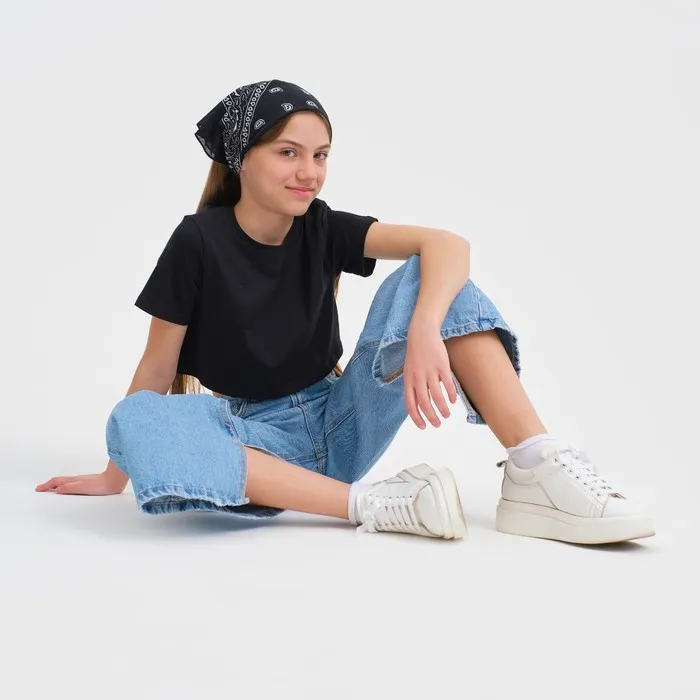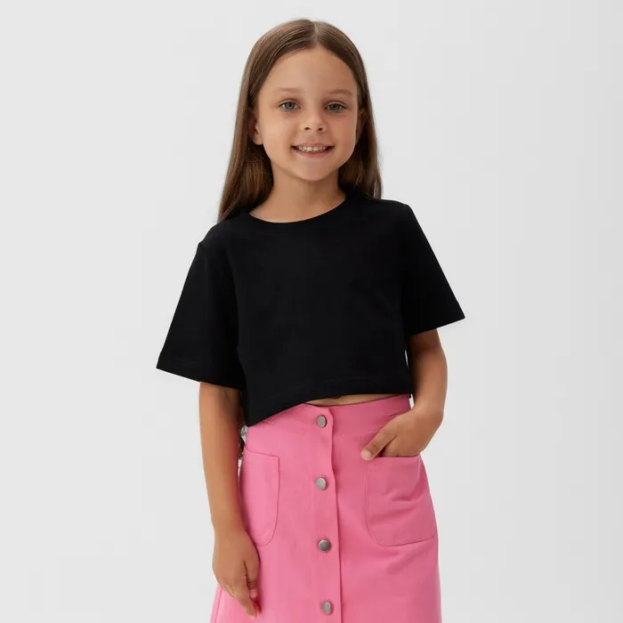 Футболка для девочки укороченная KAFTAN Selfie, рост 164-170 см, чёрная — Характеристики