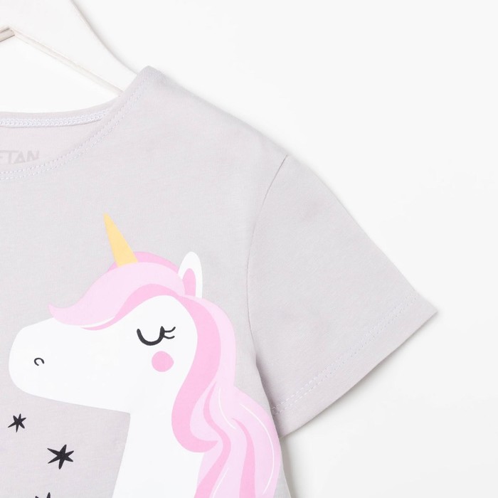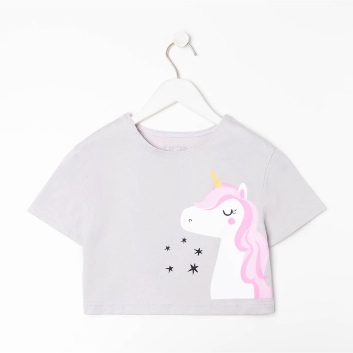 Футболка для девочки укороченная KAFTAN: Unicorn, размер 34 (122-128 см), серая